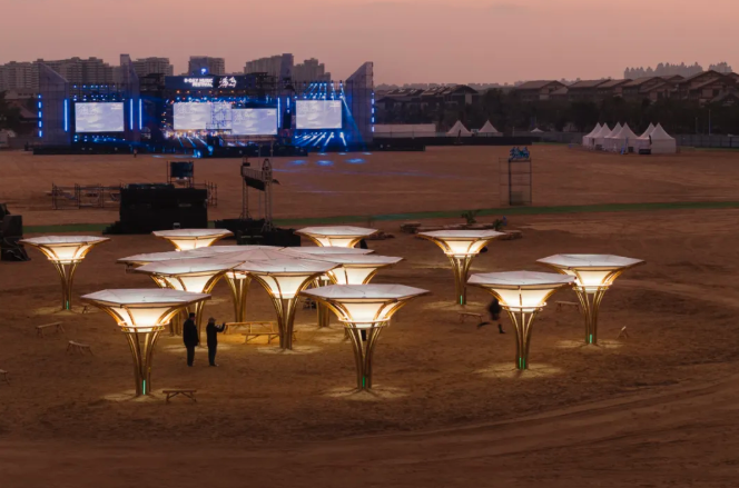 當(dāng)音樂節(jié)落幕,這些裝置將被拆解為獨立單元,可重組為新的藝術(shù)裝置場景,讓藝術(shù)擺脫一次性消耗的宿命,轉(zhuǎn)而成為可循環(huán)的建筑載體。