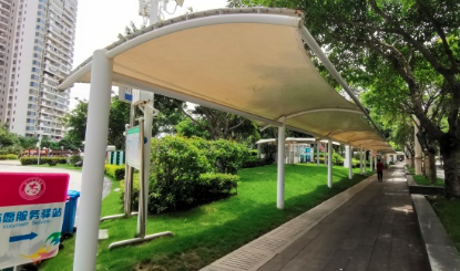 張拉膜連廊多用于交通樞紐、景區(qū)碼頭等場(chǎng)所,通過連續(xù)頂棚覆蓋,實(shí)現(xiàn)無風(fēng)雨換乘或通行。