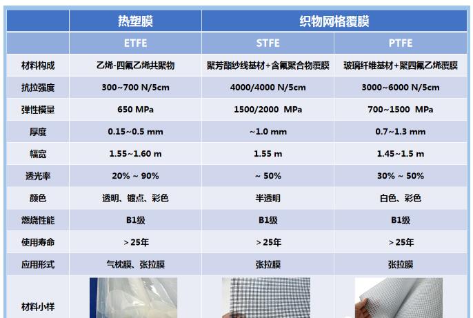 在建筑和結(jié)構(gòu)的方案設(shè)計(jì)階段,選擇高透光率的膜材時(shí),常常會(huì)對(duì)不同種類膜材的特點(diǎn)把握不準(zhǔn)。本文針對(duì)這個(gè)問題,將ETFE、STFE、PTFE高透膜的各自特點(diǎn),進(jìn)行詳細(xì)的梳理,以期為高透膜的選擇提供有理有據(jù)的技術(shù)支撐。